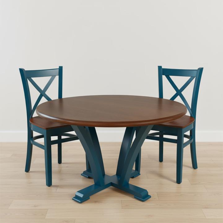 Masa Vera imbina eleganta liniilor curbate cu robustetea lemnului masiv. Blatul este realizat din MDF furniruit, ideal pentru finisaje uniforme si durabile, iar structura este din lemn de fag, cunoscut pentru rezistenta si aspectul sau cald. Baza mesei este proiectata in forma de cruce, cu detalii curbate ce adauga un plus de rafinament. Dimensiunile blatului pot fi personalizate in functie de nevoile clientului, intre 1200 mm si 1800 mm in diametru.